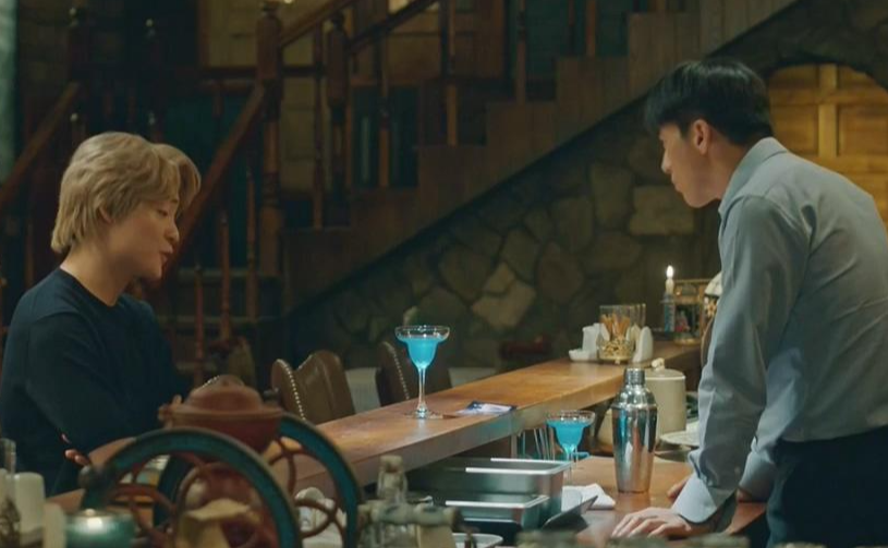 카페 하와이에서 김욱은 블루하와이라는 칵테일을 토마스에게 만들어주고